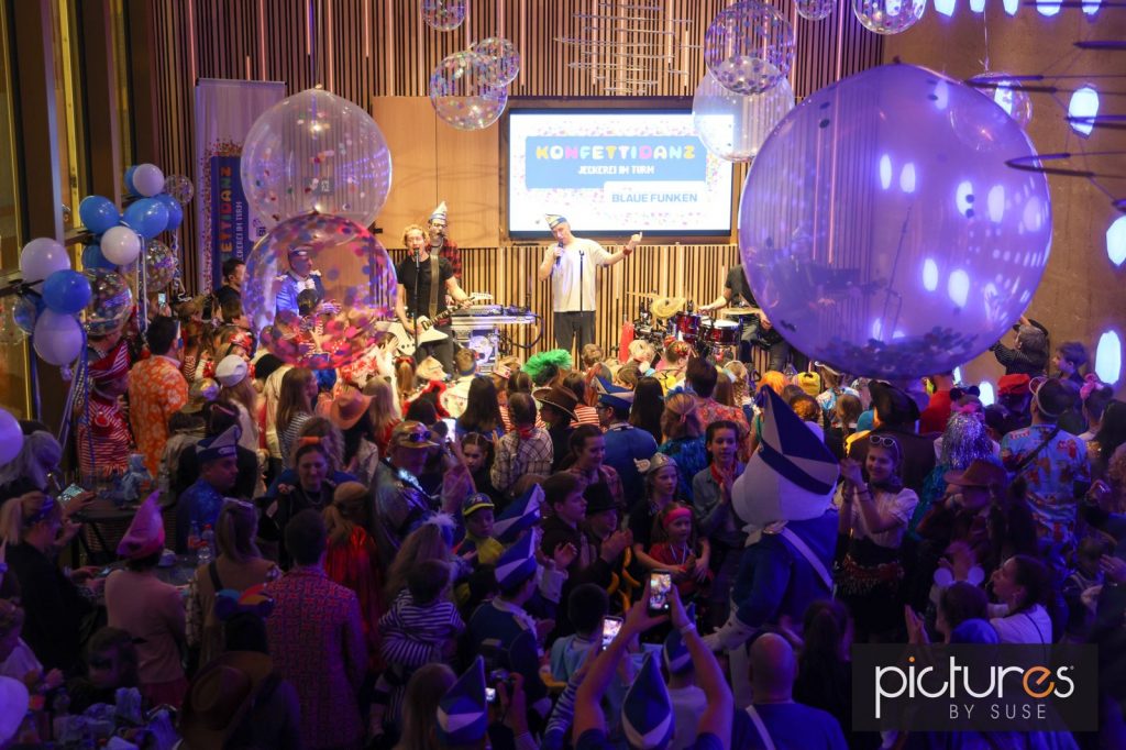 Die Blauen-Funken feiern Ihre Premierensitzung in unserem Turm. Unter dem Titel “Konfettidanz – Jeckerei im Turm“ hat die erste eigene Kinderparty der Blauen-Funken im großen Saal des neuen Anbau unseres Sachsenturms erfolgreich Premiere gefeiert.